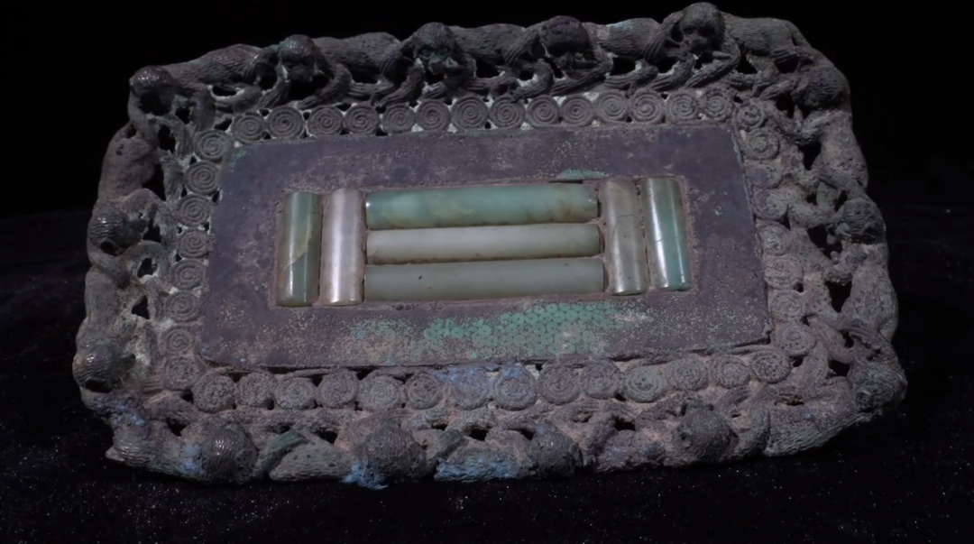 Bronze buckle encircled with monkey motifs, from the collection of Yunnan Lijiashan Bronze Ware Museum [Photo/Qingzhou Museum official WeChat account]