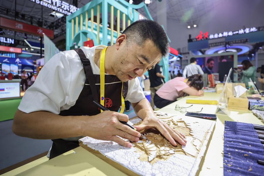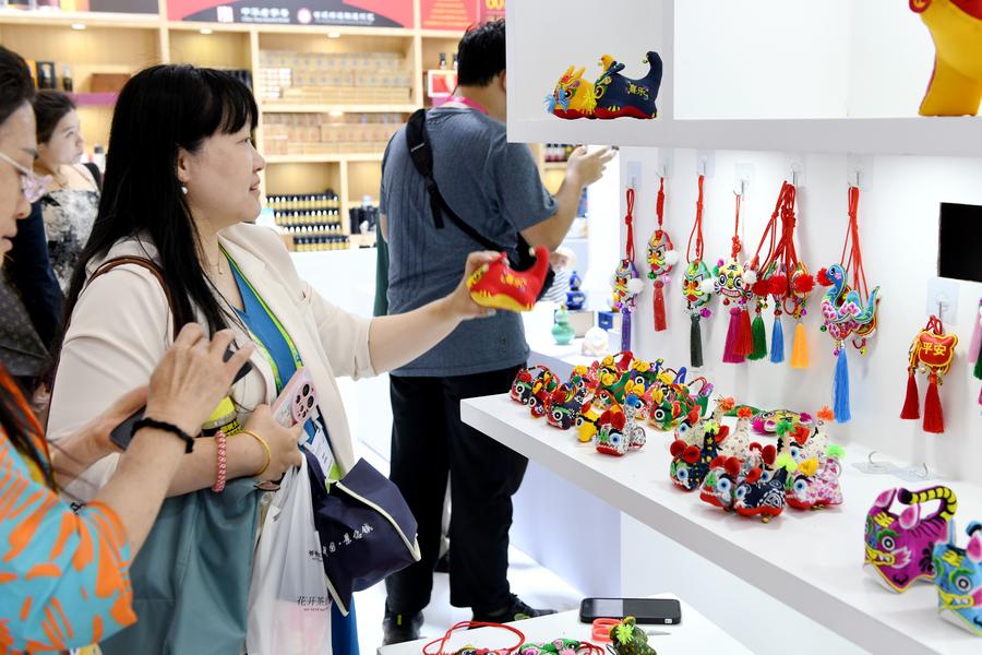 HAIKOU - With innovative design and display forms, intangible cultural heritage products from all over the country, ranging from traditional handicrafts to specialty food, are showcased at the expo to demonstrate the profound heritage of traditional Chinese culture and attract the attention of many visitors.
