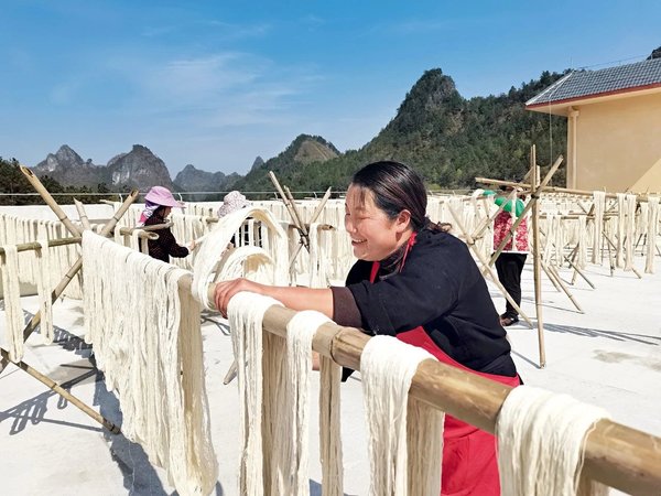 Li Fengzhen, a Baiku Yao woman, lives with her family in an ethnic Yao village in Nandan, a county in Hechi, a city in South China's Guangxi Zhuang autonomous region. Nandan is inhabited by Baiku Yao people, an ethnic minority known for wearing traditional, white-colored pants. Li began learning how to make ethnic Yao clothes from her mother and grandmother when she was a little girl. With support from her husband and children, Li, now in her fifties, continuously improves the craft-making business her family operates in their hometown. "I'm confident to advance the Yao clothing industry, leading my family to a happy life, and meanwhile, helping our ethnic Yao villagers live better lives too," Li says.