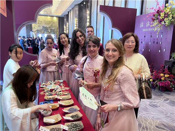Portuguese guests dressed in modern Chinese-style attire enjoy the traditional wedding. [Photo provided to chinadaily.com.cn]