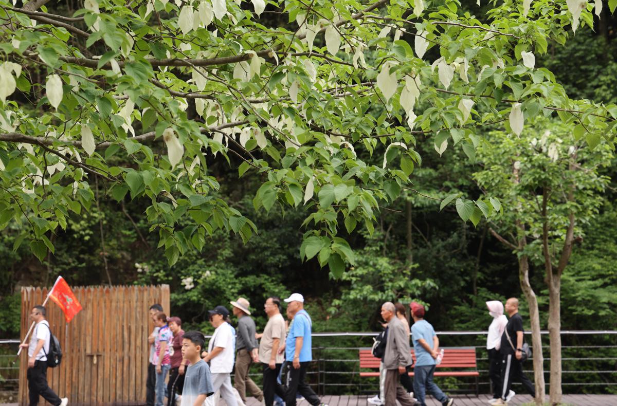 Rare dove tree flowers, often dubbed the "panda of the plant kingdom", recently graces Zhangjiajie National Forest Park in Hunan province with their beauty. [Photo by Wu Yongbing / for chinadaily.com.cn]