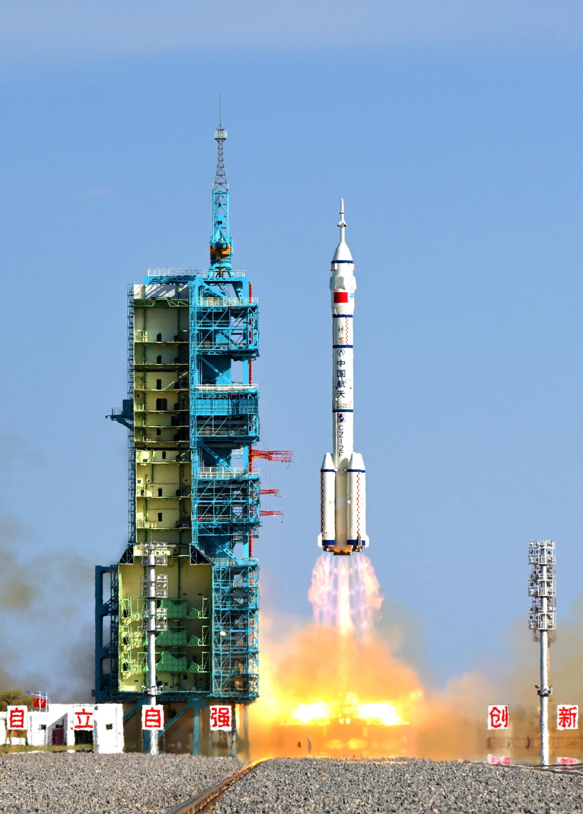 The three Shenzhou XX crew members — mission commander Senior Colonel Chen Dong, Colonel Chen Zhongrui and Colonel Wang Jie, all from the People's Liberation Army Astronaut Division — got off the ground at 5:17 pm as their spaceship's carrier, a 20-story-tall Long March 2F rocket, soared into skies from the Jiuquan Satellite Launch Center in northwestern China's Gobi Desert.
