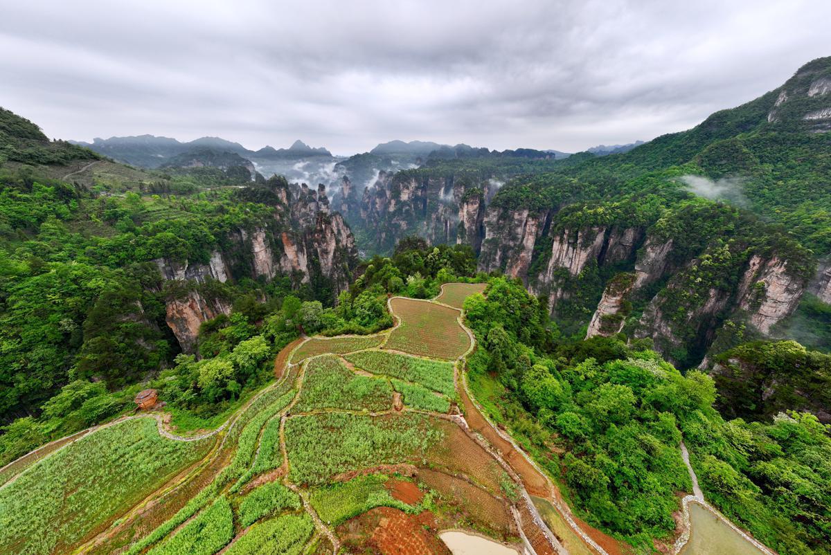 Farmland terraces grace clifftops at stunning Zhangjiajie National Forest Park