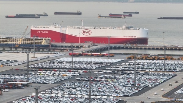 SHENZHEN -- China's self-developed car carrier "BYD Shenzhen", the largest of its kind worldwide, set off on its maiden voyage with more than 7,000 BYD new energy vehicles (NEVs) on Sunday evening, according to the Shenzhen-based carmaker BYD.