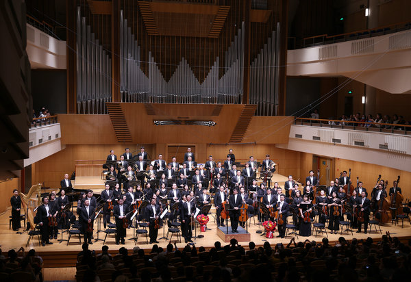 Under the baton of conductor Huang Jiajun, the China National Symphony Orchestra staged a concert in Beijing on Saturday. [Photo provided to chinadaily.com.cn]