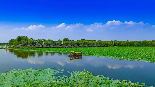 At Weishan Lake, visitors can camp and admire flowers from April to May. [Photo/WeChat account: jnwhlyj]