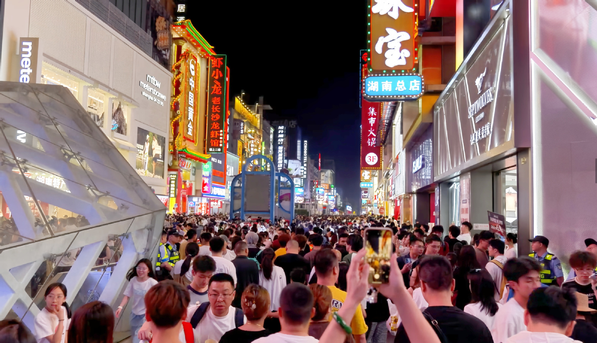 The Wuyi business center in Changsha, Hunan province, comes alive as tourists take advantage of the May Day holiday. [Photo provided to chinadaily.com.cn]