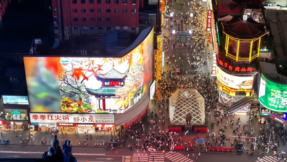 The Wuyi business center in Changsha, Hunan province, comes alive as tourists take advantage of the May Day holiday. [Photo provided to chinadaily.com.cn]