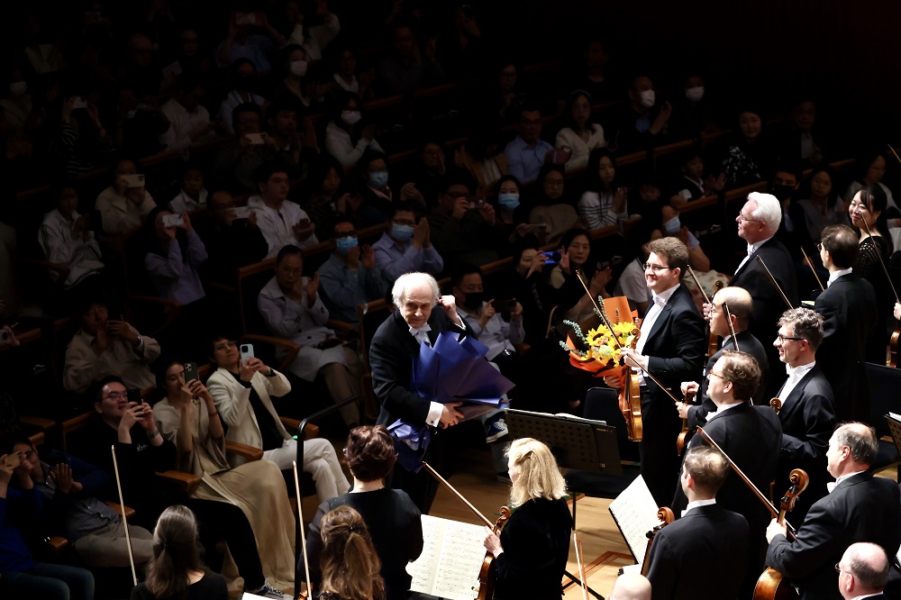 Adam Fischer leads the Dusseldorf Symphony Orchestra in response to the curtain call. [Photo/IC]
