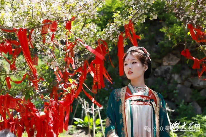 An eye-catching hanfu show kicks off on the magnificent Taishan Mountain in Tai'an on May 11. [Photo/Dazhong News]