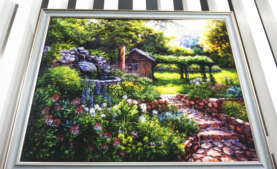 A carpet resembling an oil painting on display at the Yangxin Carpet Museum. [Photo by Bi Nan/chinadaily.com.cn]