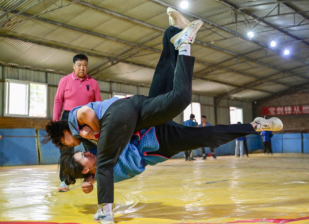 In a rural courtyard at Goutou village, Baoding, North China's Hebei province, 69-year-old Bai Hejiang, known as "Wrestling Grandpa," has spent 12 years teaching Chinese-style wrestling to over 1,000 local children for free.