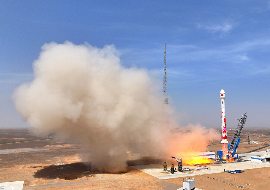 JIUQUAN - A commercial rocket lifted off on Saturday in northwest China, successfully sending six satellites into space.