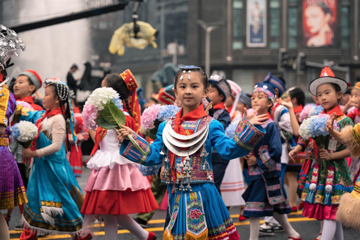 Performers from various ethnic groups participate in a parade on Sunday in Guiyang, Guizhou province. [Photo by Liu Boqian/chinadaily.com.cn]