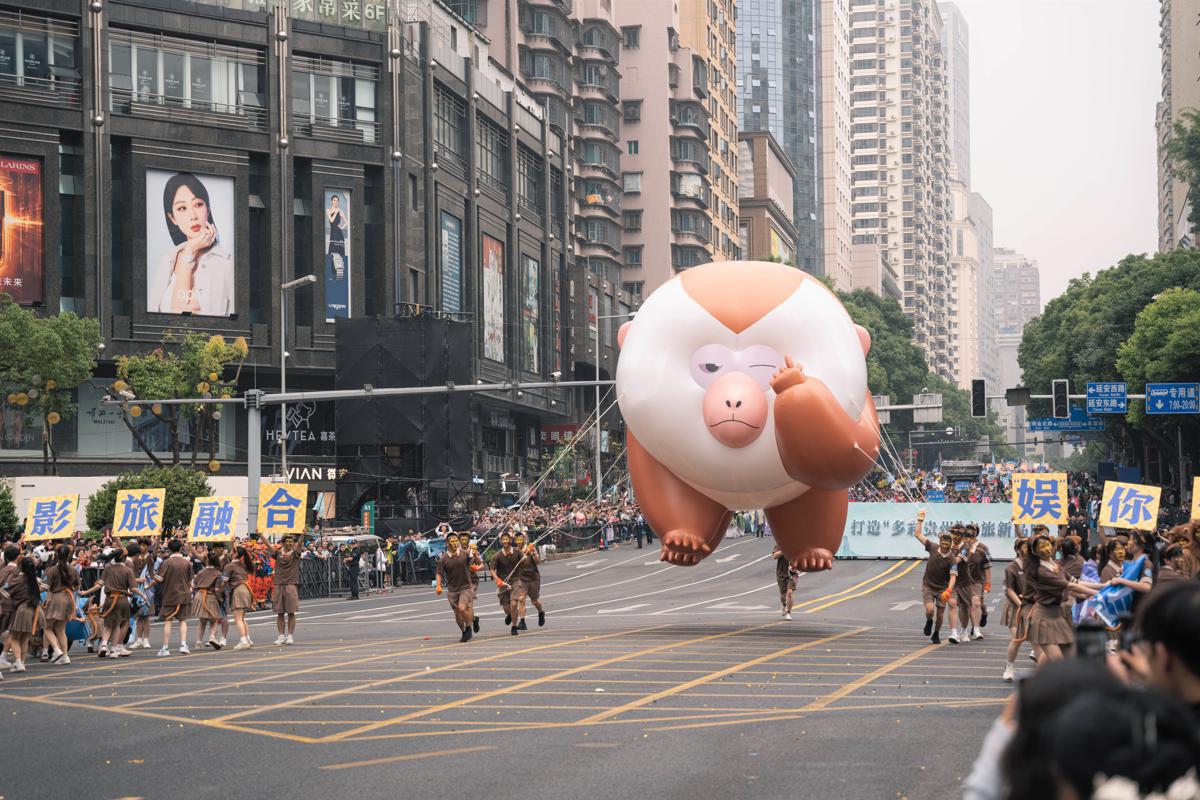 The viral Xiaolaofei macaque parade formation. [Photo by Liu Boqian/chinadaily.com.cn]