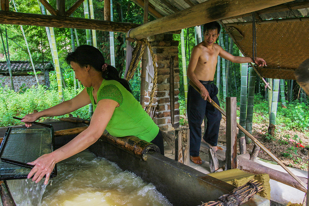 The craft of bamboo paper production is recognized as a national intangible cultural heritage. [Photo by Zeng Qiwu/provided to chinaservicesinfo.com]