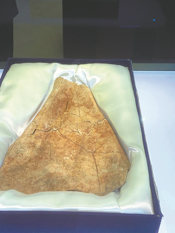 Oracle bones inscribed with the earliest known Chinese characters that are unearthed from the Yinxu Ruins of Anyang and housed at the Chinese Archaeological Museum in Beijing. [Photo by Fang Aiqing/China Daily]