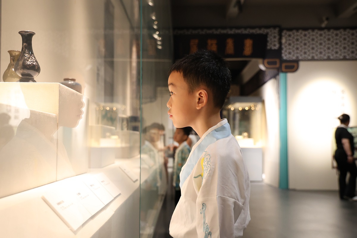A boy admires exquisite ceramics at the Guangdong Shiwan Ceramics Museum [Photo/provided to chinaservicesinfo.com]