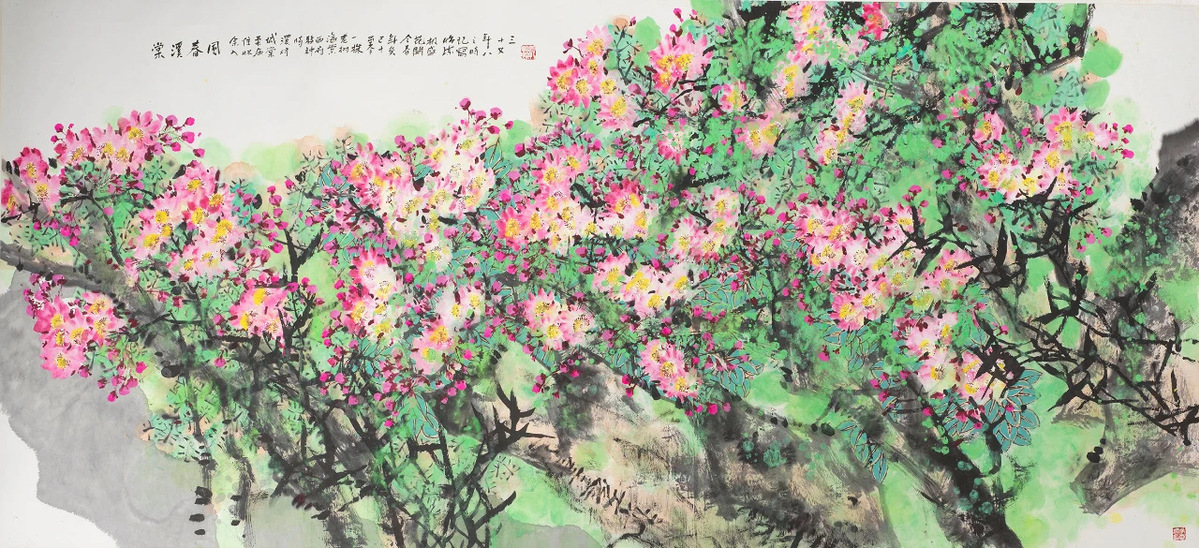 Flower Fragrance, Guo Yicong's ongoing exhibition at the National Art Museum of China, shows his recent works, of smaller sizes and big dimensions stretching several meters in length, until June 3.[Photo provided to chinadaily.com.cn]