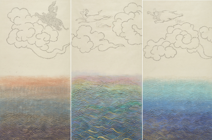 By incorporating Buddhist scriptures, statues, lotus flowers and other elements associated with Buddhism, Zheng immerses her audience in a mood of meditation for one to pause, and reflect on the vigor of all lives in the world. Her works echo the belief of Zen Buddhism that seeing the overall of the world in a flower, or a leaf. The exhibition is held at Yungang Art Gallery, of Yungang Institute in Datong, until Aug 28.