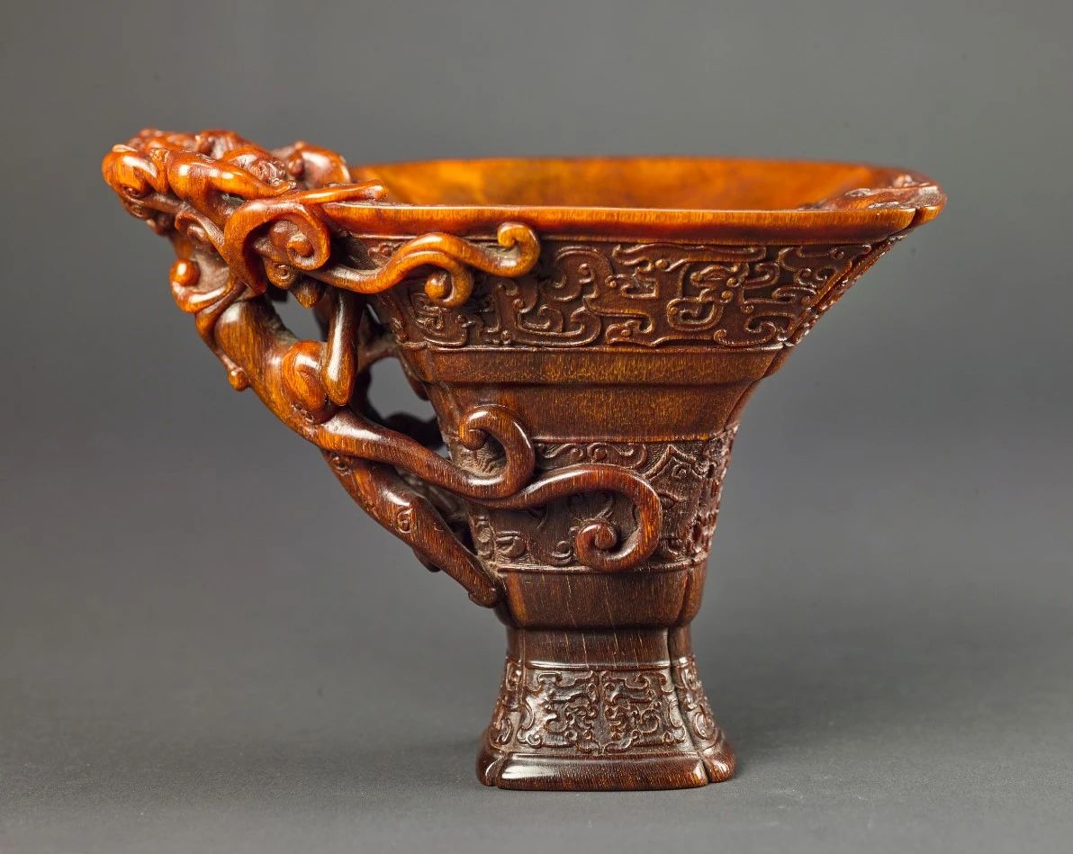 Rhinoceros horn cup carved with motifs imitating ancient bronzes, Qing Dynasty (1644-1911) [Photo/Shanghai Museum official WeChat account]