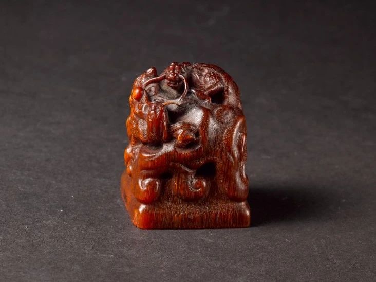 Rhinoceros horn seal with a carved dragon knob, Qing Dynasty [Photo/Shanghai Museum official WeChat account]