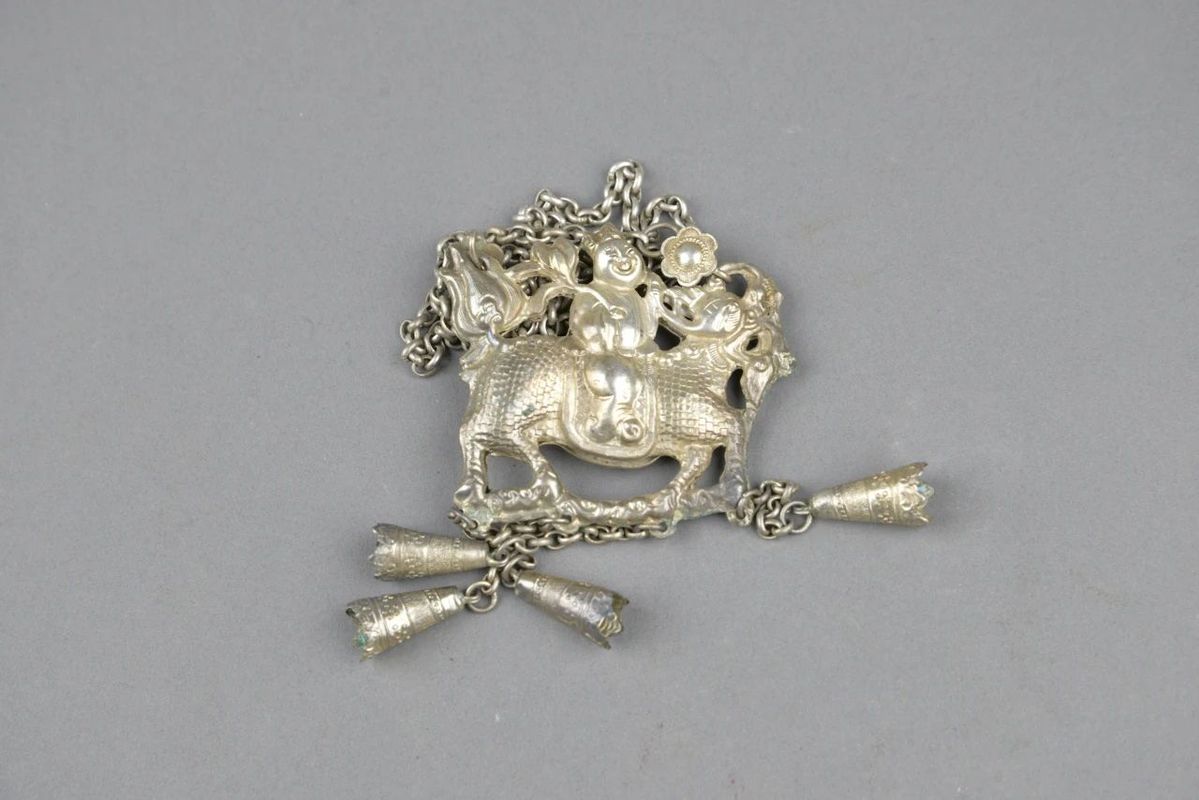 qilin (mythical creature) carrying children design, late Qing Dynasty (1644-1911) and early Republic of China (1912-49) [Photo/Yantai Museum official WeChat account]