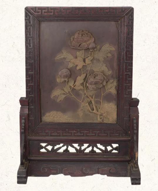 Yuanzhou stone carved screen with peony motifs, Qing Dynasty (1644-1911) [Photo/Hunan Museum official WeChat account]