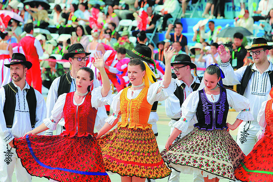 Folk performances from home and abroad kick off the ICH festival in Chengdu, Sichuan, on May 28. [Photo provided to China Daily]