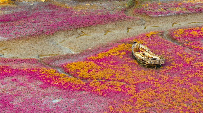 Through ongoing ecological restoration efforts this summer, the red beach has transformed into a stunning natural masterpiece along the coastline of Qingdao. [Photo/IC]