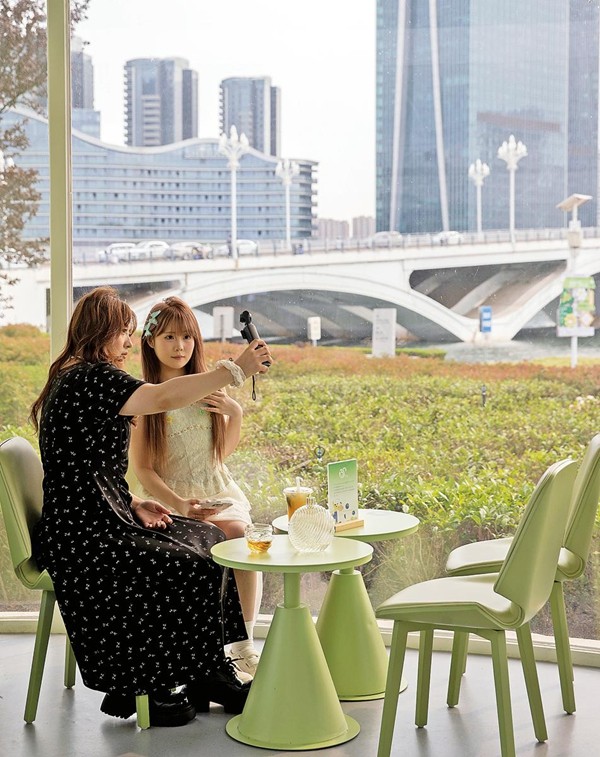 Customers take selfies at a tea shop in Rizhao, Shandong province, on May 25. CHEN ZEBING/CHINA DAILY