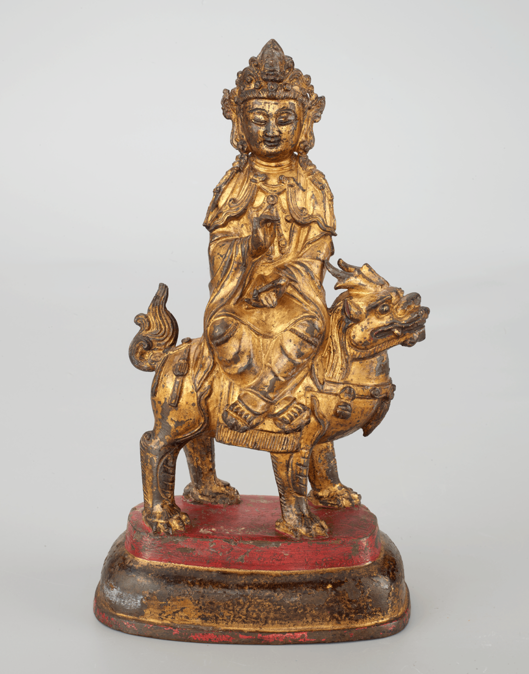 Gilt bronze statue of Simhanada Avalokitesvara, Ming Dynasty (1368-1644) [Photo/Hunan Museum official WeChat account]