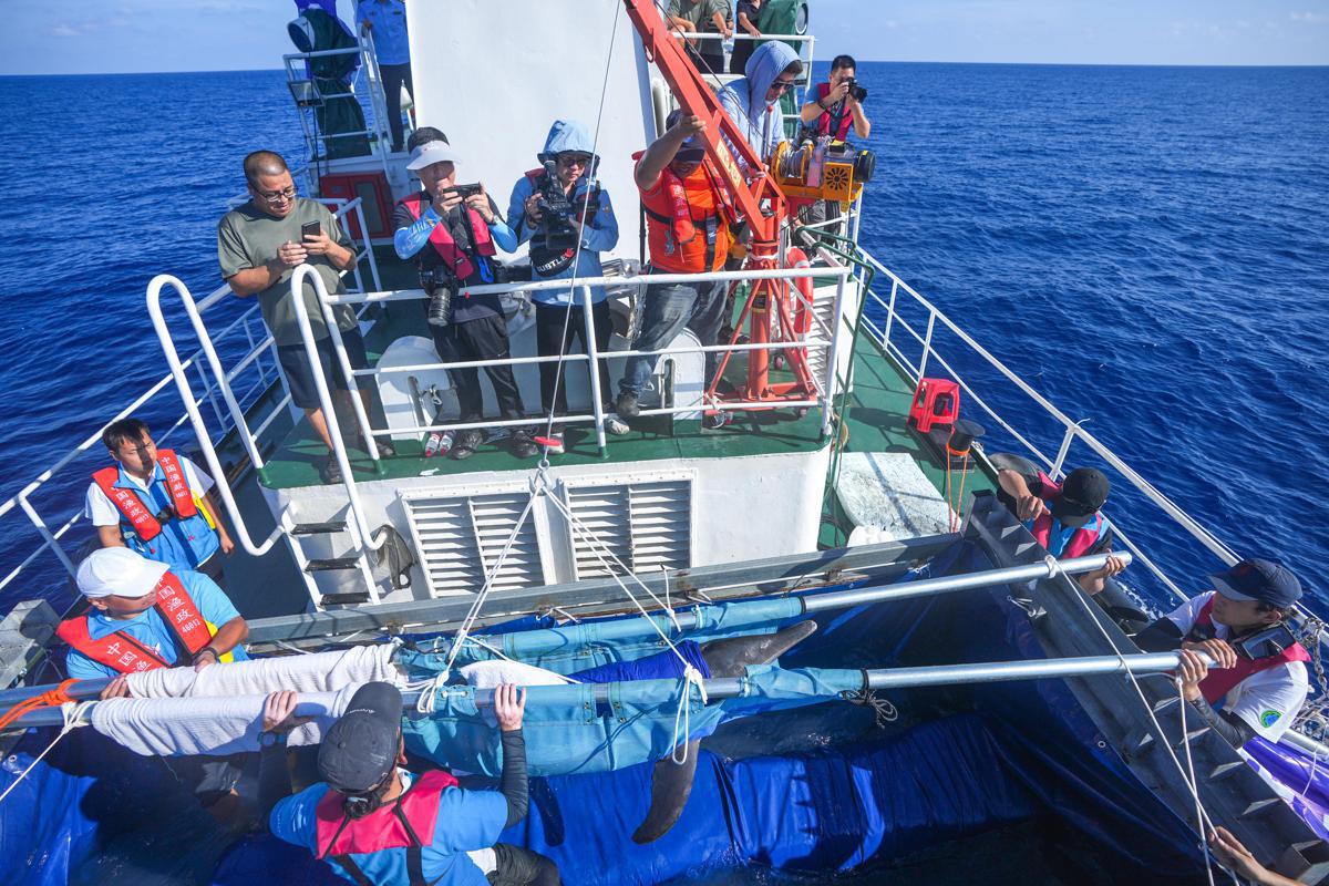 Nearly 100 people attended a release ceremony nearly 70 nautical miles from Sanya on Sunday, World Oceans Day, including the dolphin's initial discoverers, volunteers, and medical staff.