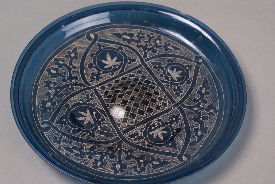 Blue glass plate with four-lobed flower motifs, from the collection of Famen Temple Museum [Photo/Famen Temple Museum official WeChat account]