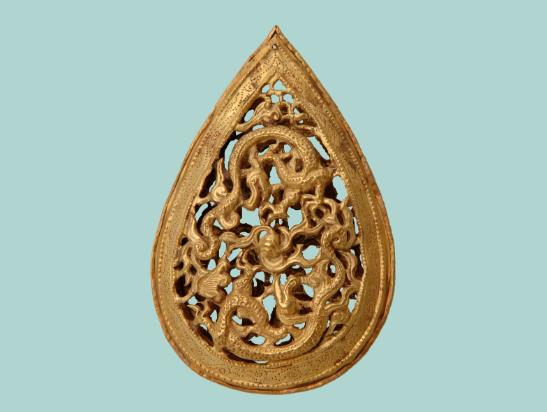 Gold pendant with openwork dragon motifs, Yuan Dynasty (1271-1368), from the collection of Changsha Museum [Photo/Changsha Museum official WeChat account]