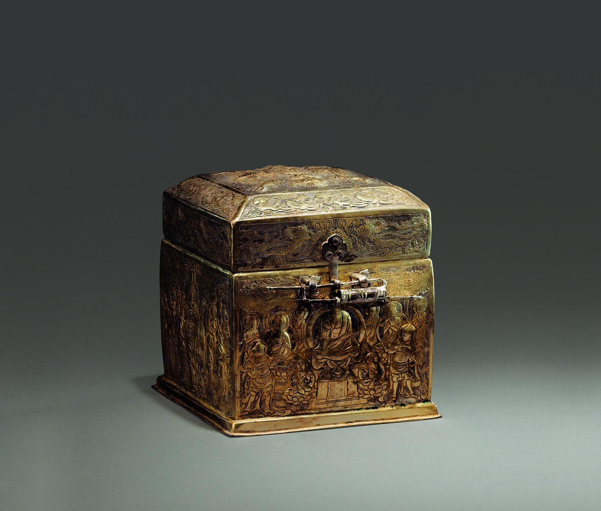 Unearthed from the rear chamber of the underground palace at the Tang Dynasty (618-907) Famen Temple in Baoji, Shaanxi, this silver casket is the fourth of an eight-layer reliquary set created to enshrine a replica of the Buddha's finger bone.
