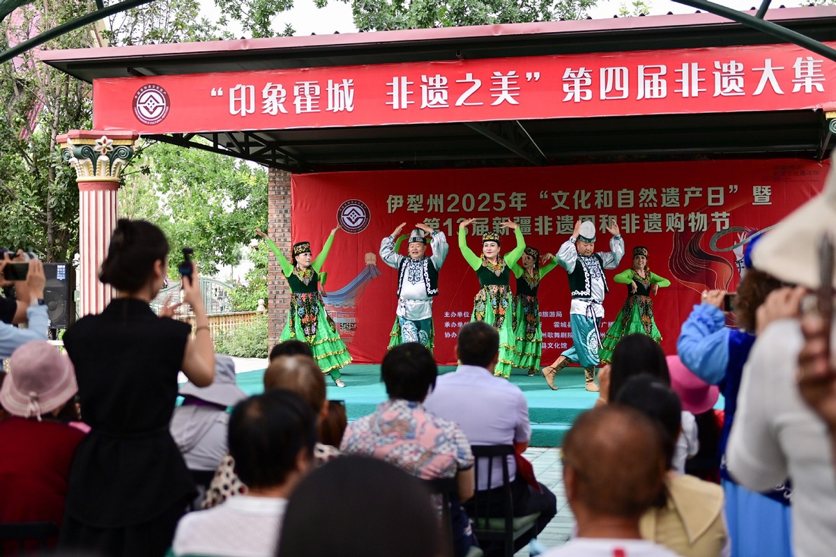Tourists watch an intangible cultural heritage performance in Huocheng county, Northwest China's Xinjiang Uygur autonomous region, June 14, 2025. Vast fields of lavender in Huocheng county entered full bloom in June, transforming the landscape into a sea of purple. [Photo/Xinhua]