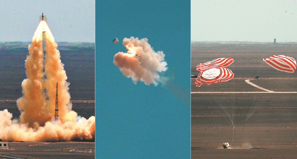 Roughly 20 seconds later, the combination reached the predetermined altitude, and the return capsule separated from the escape tower. The parachute deployed smoothly, and at 12:32 pm, the capsule landed safely in the designated test area, cushioned by an airbag system, the agency said.