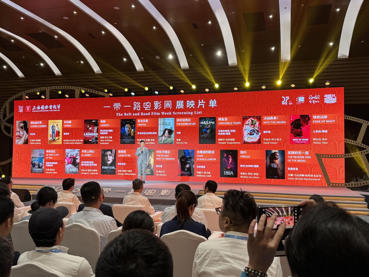 The launch ceremony of the Belt and Road Film Week at the 27th Shanghai International Film Festival, or SIFF, was held at the exhibition center of Shanghai Shendi Group in Pudong New Area on Wednesday.