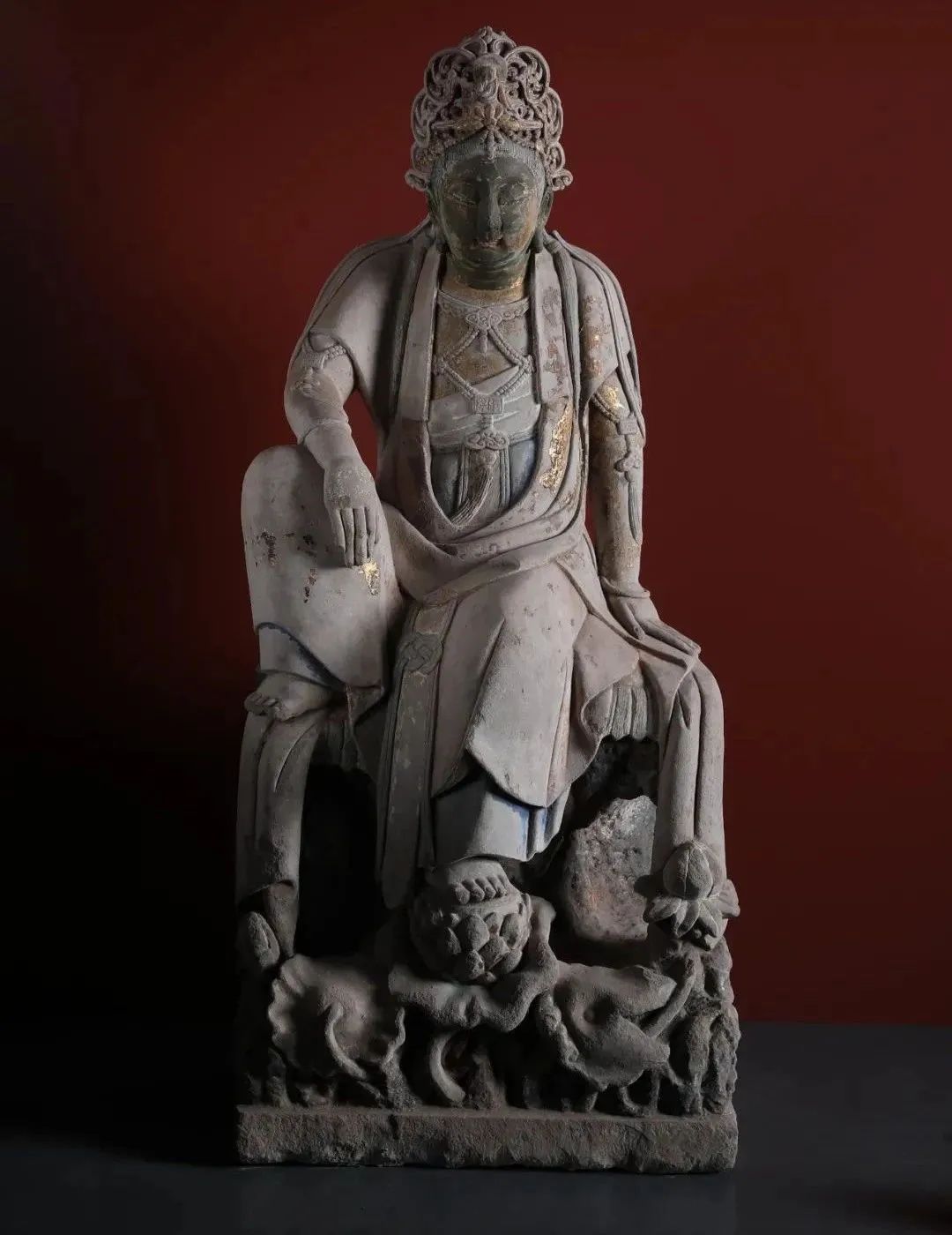 Painted and gilded stone seated statue of Avalokiteshvara in Water Moon Form (Shuiyue Guanyin), Song Dynasty (960-1279) [Photo/Chongqing China Three Gorges Museum official WeChat account]