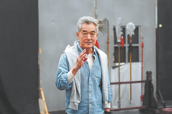 Veteran actor Zhang Qiuge; actor Yu Shaoqun and actress Cheng Lisha; director Cong Lin during a rehearsal of the play at the NCPA on June 11. [Photo provided to China Daily]