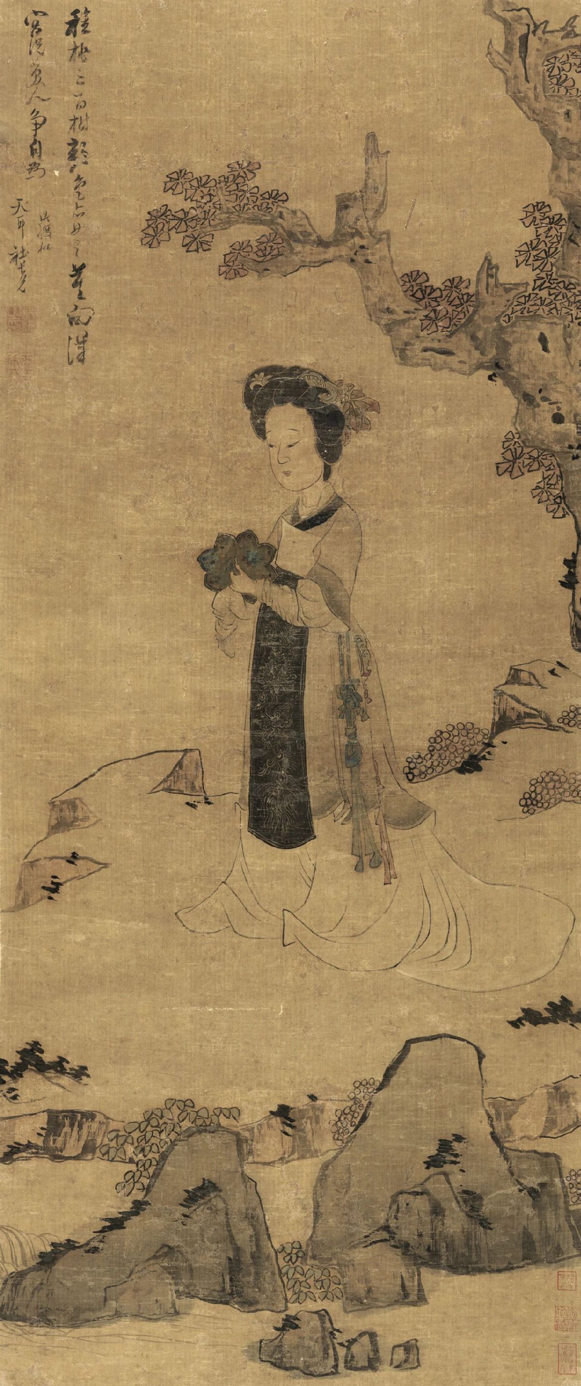 Lady Holding a Mirror, Chen Hongshou (1598-1652), Ming Dynasty (1368-1644), ink and color on silk [Photo/Tsinghua University Art Museum official WeChat account]