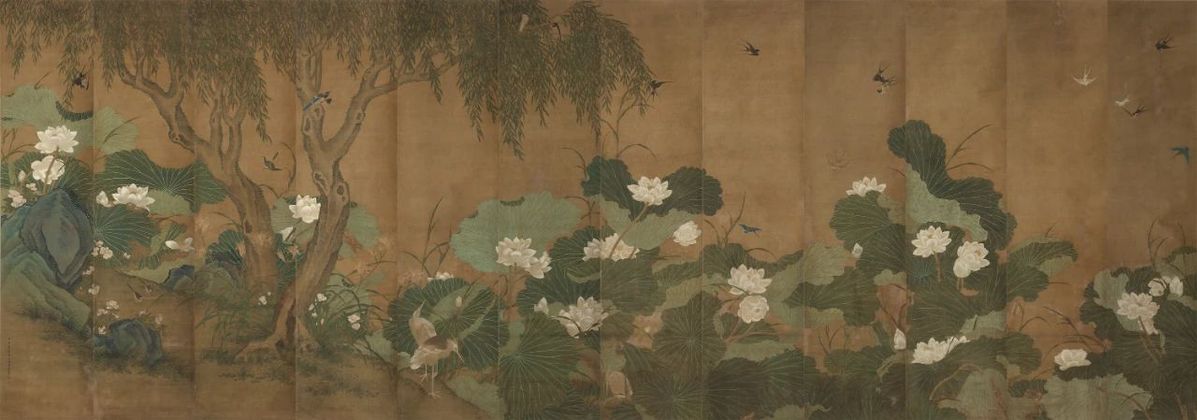 Swallows, Willows, and Lotus Pond, Sun Yi (1638-1712), Qing Dynasty, ink and color on silk [Photo/Tsinghua University Art Museum official WeChat account]