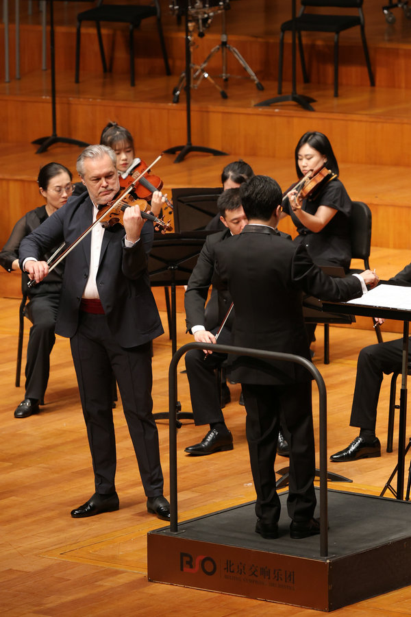 During the first half of the concert, the Russian-born virtuoso violinist Vadim Repin played Sergei Prokofiev's Violin Concerto No 2 in G Minor, Op 63 with Beijing Symphony Orchestra.