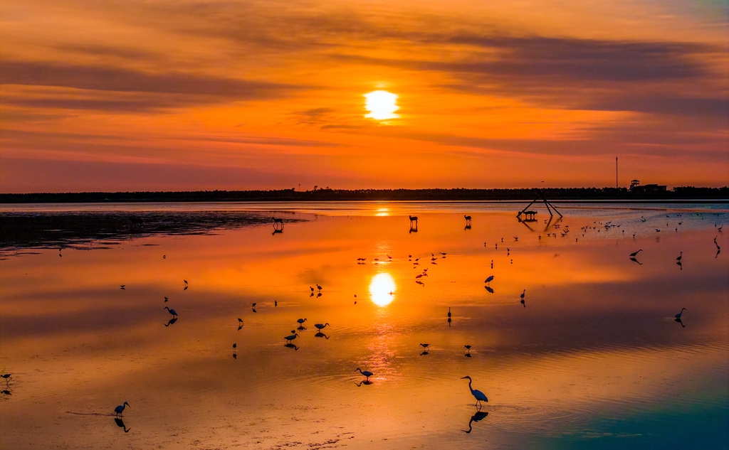 In the summer, wild milu deer roamed freely along the coastal mudflats of Tiaozini Wetland in Yancheng, Jiangsu province. Migratory birds soared across the skies, painting a breathtaking scene of ecological harmony and natural beauty.