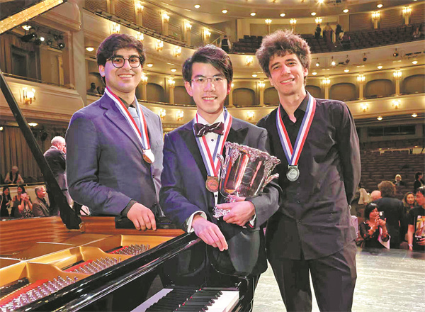 The top three of the 2025 Van Cliburn International Piano Competition. [Photo by Ralph Lauer/For China Daily]