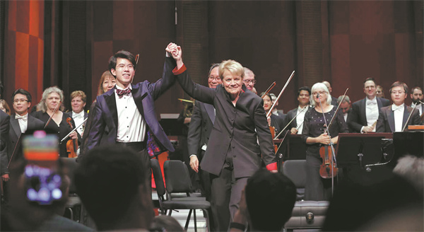 Conductor Marin Alsop and Aristo Sham. [Photo provided to China Daily]