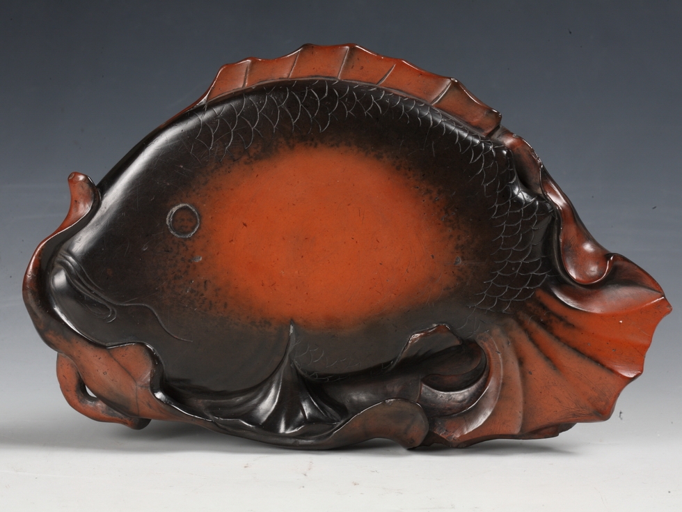 Fish-shaped cinnabar chengni clay inkstone from Tianjin Museum
