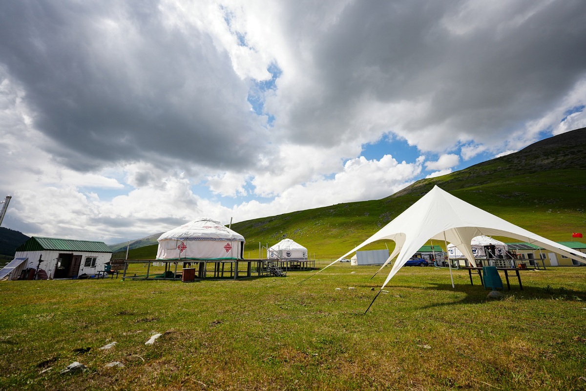 This photo taken on June 30, 2025 shows yurts for catering services run by local villagers alongside the Altay-Hemu highway in Northwest China's Xinjiang Uygur autonomous region. [Photo/Xinhua]