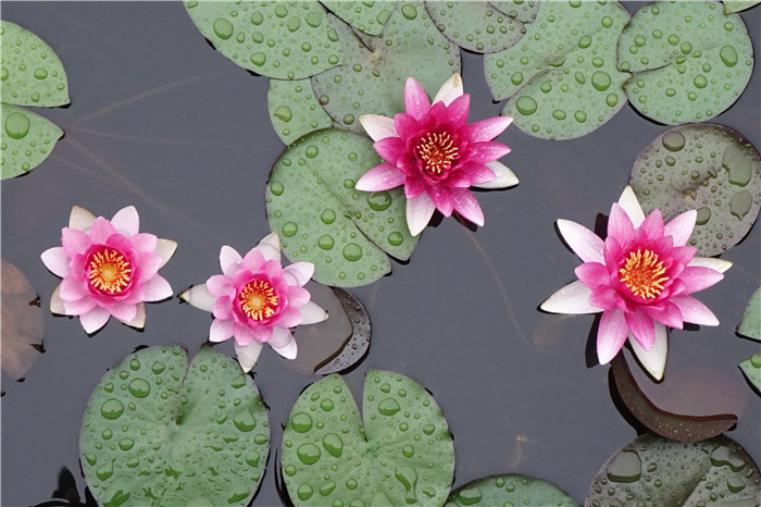 Each delicate water lily competes to bloom in the rain, exuding a vibrant beauty. [Photo/IC]